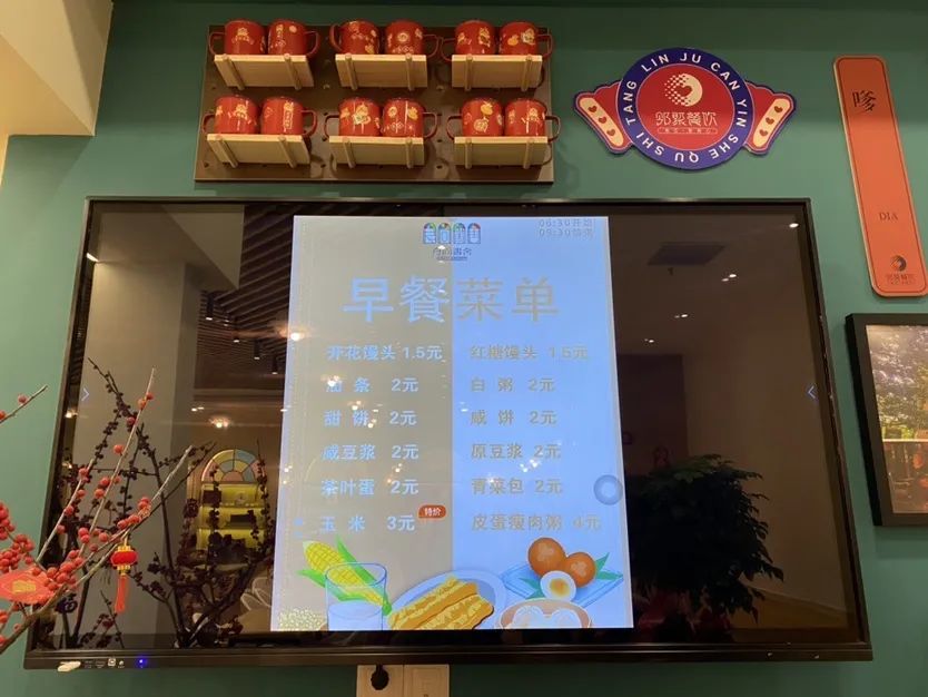 早餐的定价非常亲民,大饼、油条、豆浆、茶叶蛋都是2元左右,皮蛋瘦肉粥4元。记者算了一笔账,买上一套“四大金刚”总价也就10元不到。“食尚书舍”的早餐供应时间为6:30至9:30,李振宇说:“早餐定价低,餐厅就靠薄利多销。三小时的早餐时段,也兼顾到了不同的客群,老年人起得较早,6点半开始陆续就会来吃早餐;到了7点半,带着小孩来吃的比较多,吃完就送去学校;等到8点半以后,就会陆续有周边工作的白领来买早餐,有些就直接打包带走。”