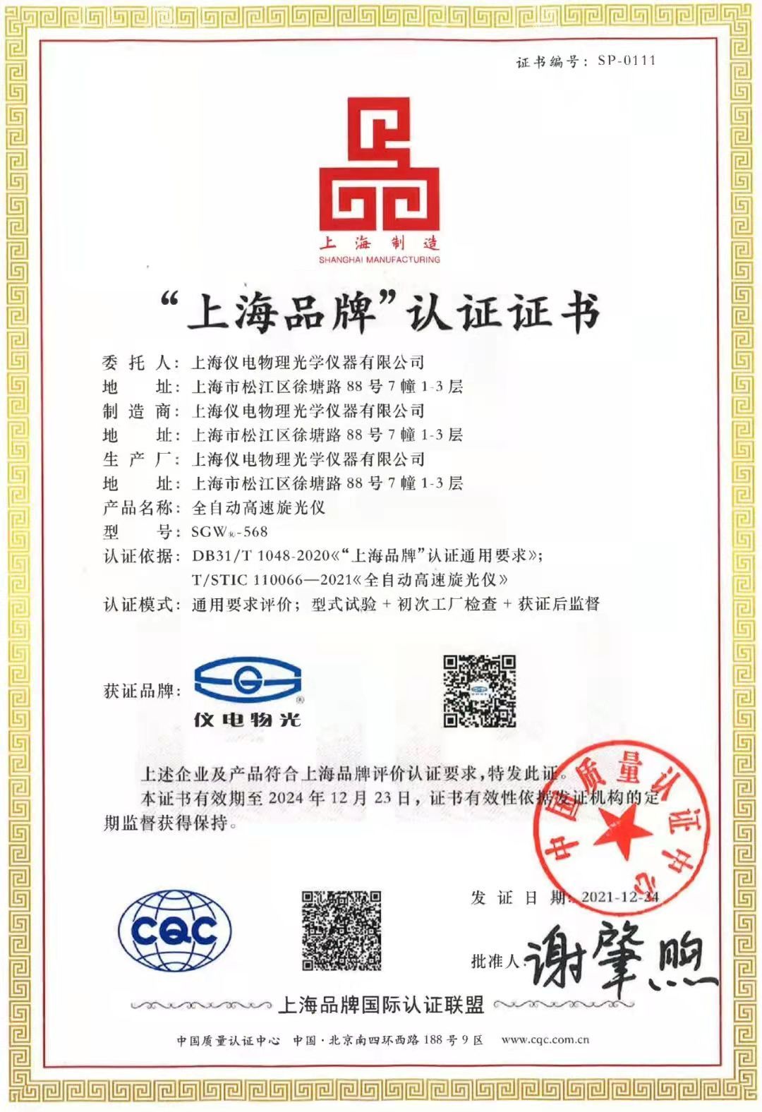 松江企业上海仪电物理光学仪器有限公司的产品SGW®-568全自动高速旋光仪日前通过“上海品牌”认证。至此,松江区共有4家企业的产品获得“上海品牌”认证。