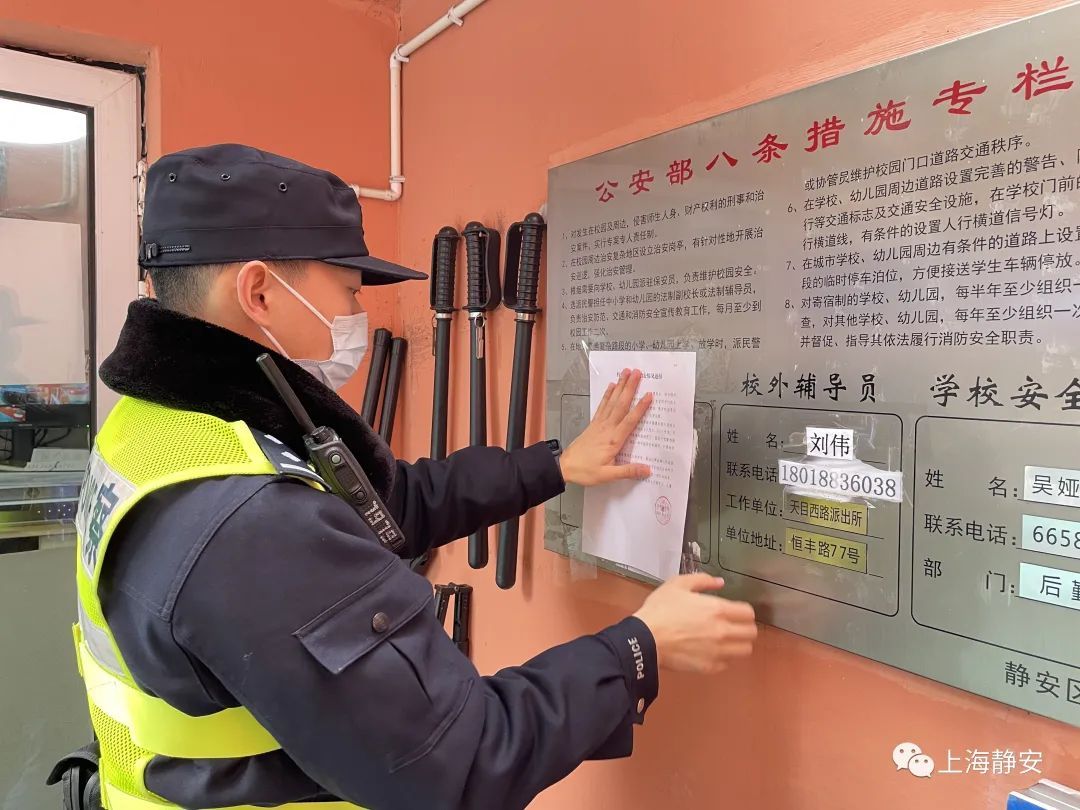 开学前夕,静安警方强化校园及周边社会面巡控力度,组织治安、交警、巡警、辖区派出所等警力,严格落实“高峰勤务”“一校多警”等安保措施,完善校园安防措施,由治安、交警、属地派出所组成的强化“驻校机动岗”。其中,彭浦新村派出所联动辖区学校,积极组建由家长志愿者、校园安保志愿者与校园安保力量组成的联防联控巡逻队。