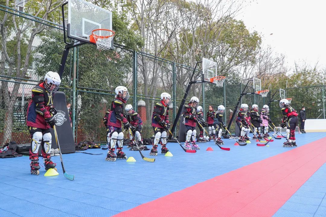 “同学们护膝护肘收收紧,按照我演示的动作再检查一遍,保持好身体平衡,跟着我一起做……”来自四年级六班的陈思同学正在讲解轮滑冰球的安全注意事项。通过“老带小”,社团老成员带动新成员,体验这项运动的魅力,感受冬奥会中国健儿比赛中的飒爽英姿,为他们助威呐喊。