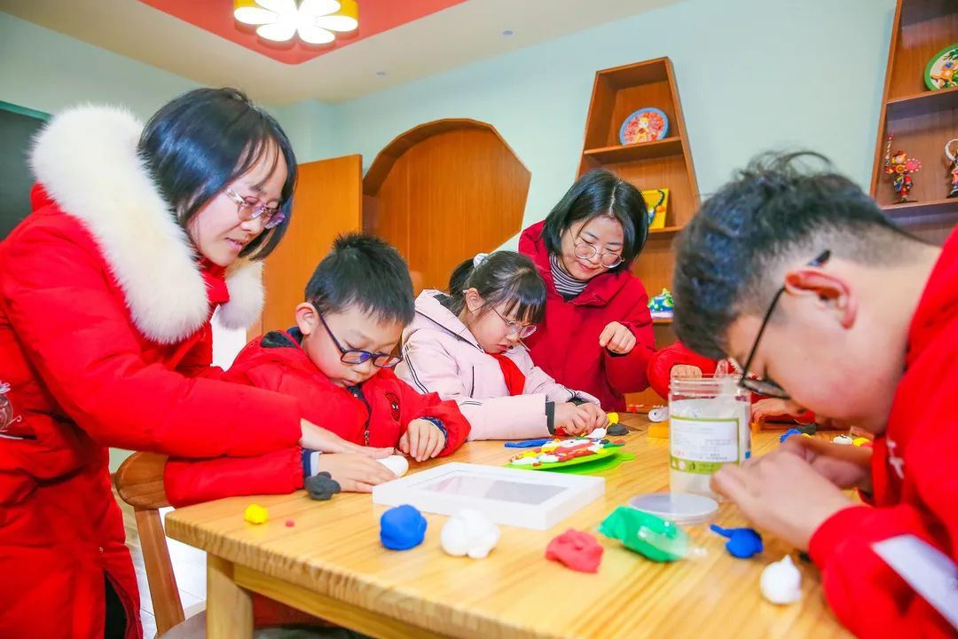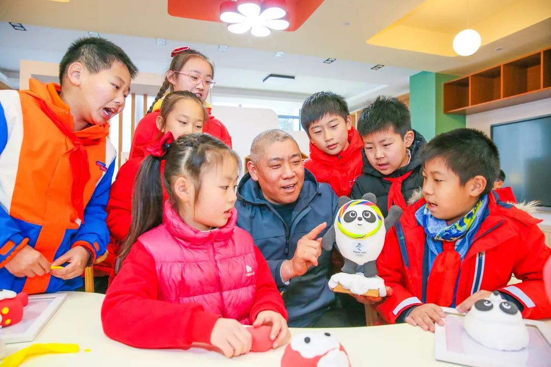 课桌上,一对可爱的冰墩墩和雪容融正在一边微笑,一边招手。“我是按照标准版的冰墩墩制作的。”学生周筱希说,“冰墩墩的眼睛是粘贴上去的,用的是超轻黏土,既灵动又明亮,比画出来的效果更好。”
