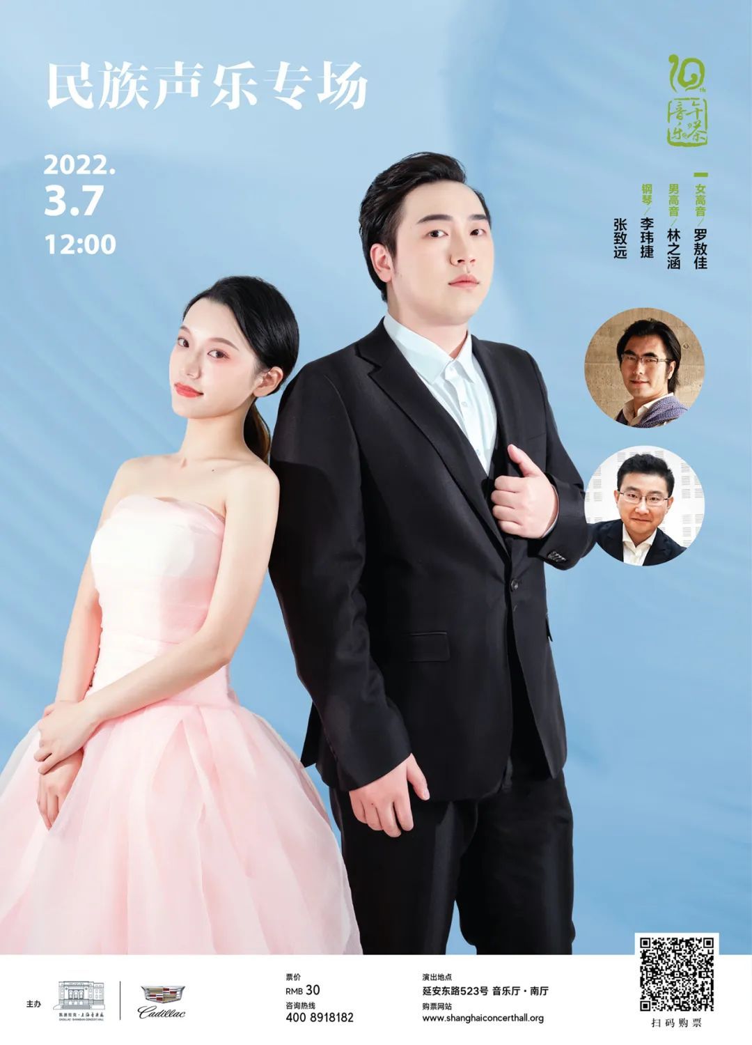 不止是器乐,喜爱声乐的观众们千万别错过。3月7日民族声乐专场,各地民歌、古诗词、还有火出圈的广场舞歌曲,海纳百川。3月10日西方声乐作品专场,从巴洛克到古典,从亨德尔到莫扎特,在咏叹调中徜徉。3月16日中国艺术歌曲专场,领略中国近现代古诗词艺术歌曲的魅力。