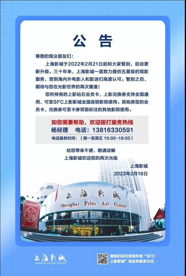 昨晚,上海影城发布公告称将于2022年2月21日起启动更新升级,作为上海电影地标的上海影城将与广大影迷暂时说一声“再见”。