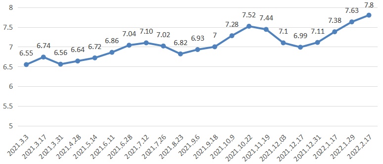 根据国家发改委通知,2月17日24时起,成品油价格上调,上海同步实行。92号汽油为7.8元/升,95号汽油8.3元/升,0号柴油7.48元/升,按一般家用汽车油箱50L容量估测,加满一箱92号汽油约多花8.5元。注:98号汽油为企业自主定价。