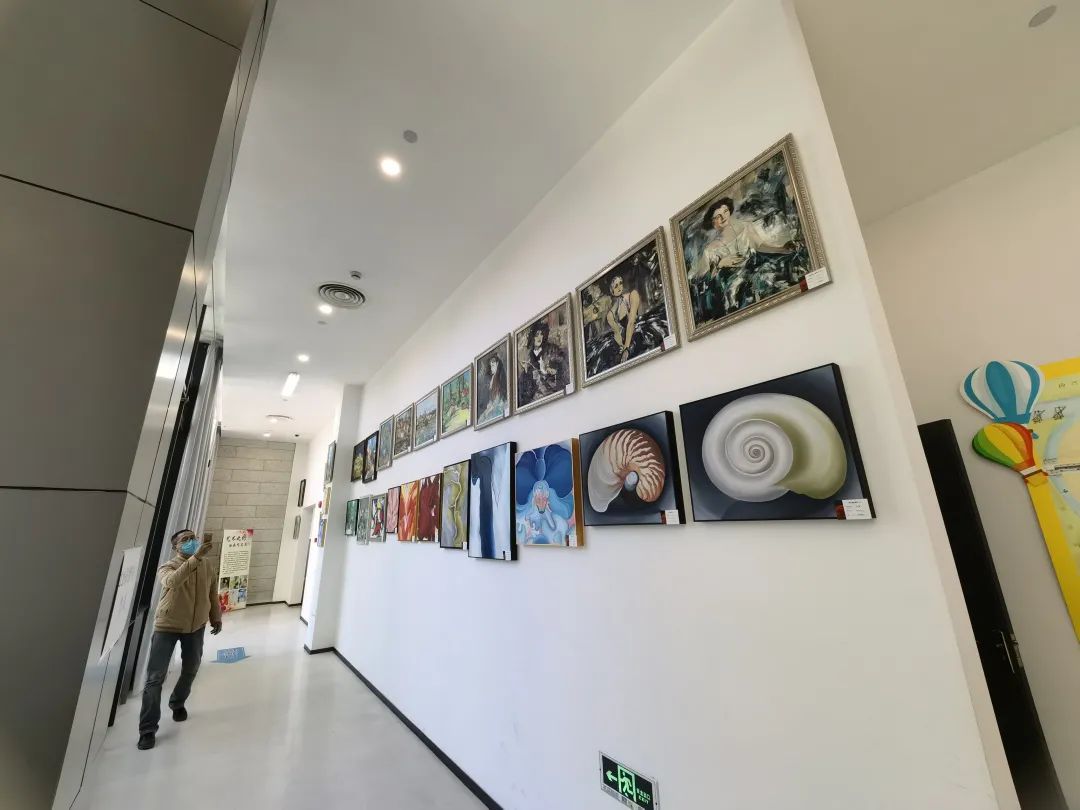 本次展览将持续到3月,共展出30幅油画作品。展览布置在淞南公园接种点的留观区内,为接种居民开启一次不一样的艺术之旅。