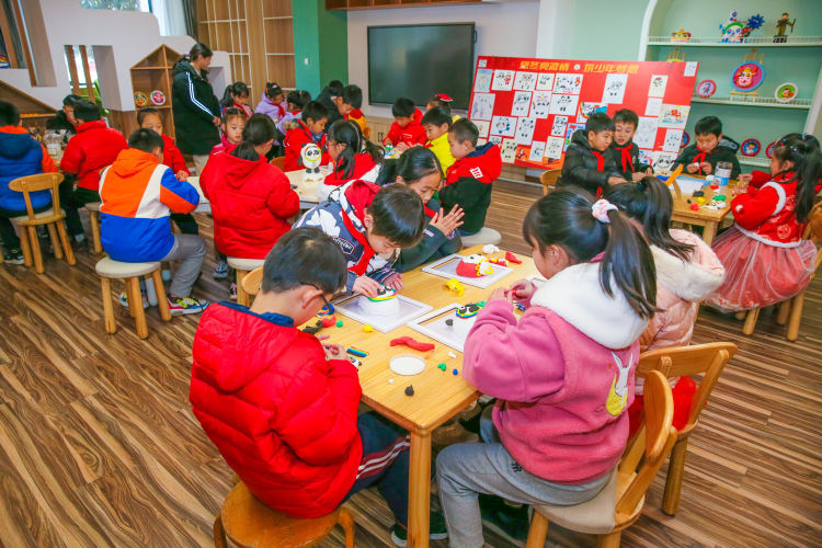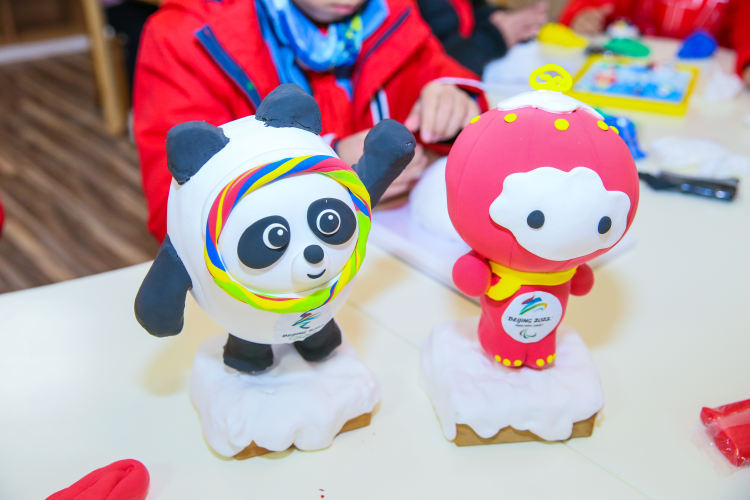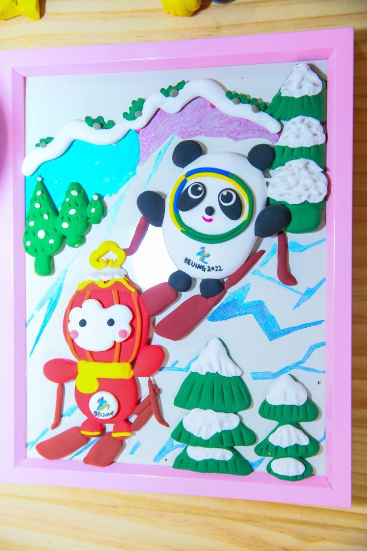 课桌上,一对可爱的“冰墩墩”和“雪容融”正在一边微笑,一边招手。不管是形态还是颜色,学生们都将它们较完美地呈现了出来。“我是按照标准版的‘冰墩墩’制作的。”学生周筱希说,“‘冰墩墩’的眼睛是粘贴上去的,用的是超轻黏土,既灵动又明亮,比画出来的效果更好。”