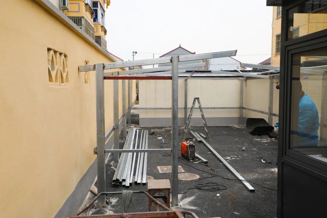 小编在小区一角看到,工人师傅正有条不紊地搭建电瓶车充电棚。完工后,预计未来可实现20多辆电瓶车同时充电,同时可解决电瓶上楼、飞线充电的顽疾。