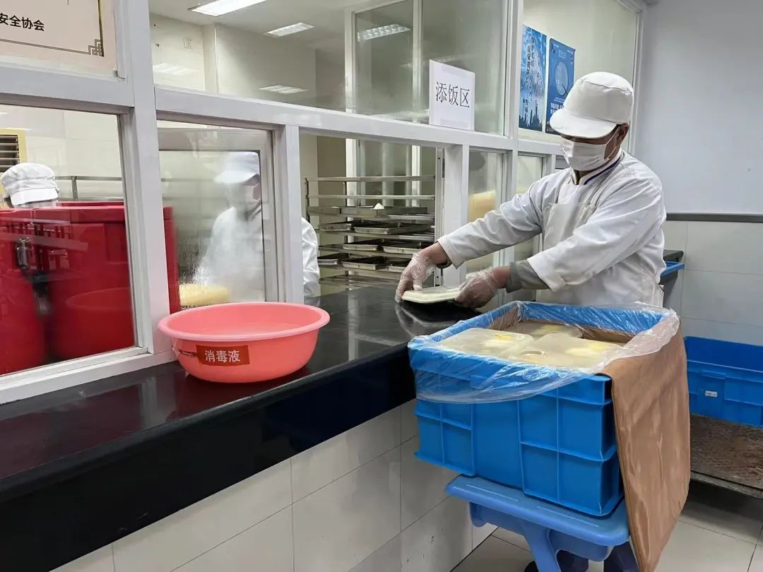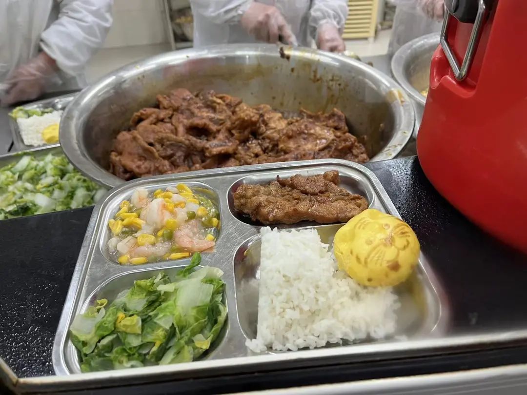 在菜品的选择上,除了由营养师制定菜色外,学校还会听取各方意见,增添学生们喜爱的菜品,让学生们更愿意在食堂用餐。今天是开学第一天,中国中学特地为学生们安排了特色餐点——一只可爱的小老虎包子,寓意虎虎生威。菜品荤素得当,红烧大排、三色虾仁、清炒生菜,几个菜式美味又营养,看着就有食欲。