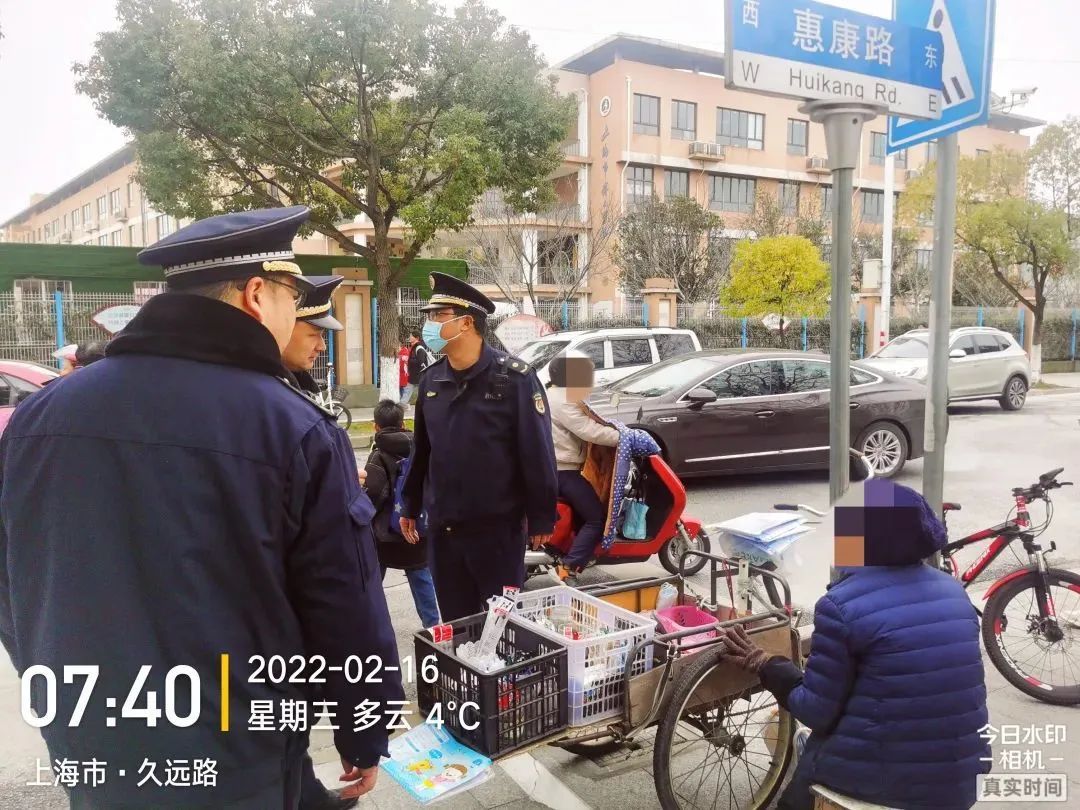 在闵行,执法队以辖区中小学周边主要道路、沿街商铺为重点对象,积极开展普法宣传,劝导店铺落实门责管理,切实维护校园周边市容环境。同时,对学校附近占道设摊、跨门经营、乱张贴、乱散发等行为加大巡查频次和查处力度,保障周边道路畅通,维护文明和谐秩序。