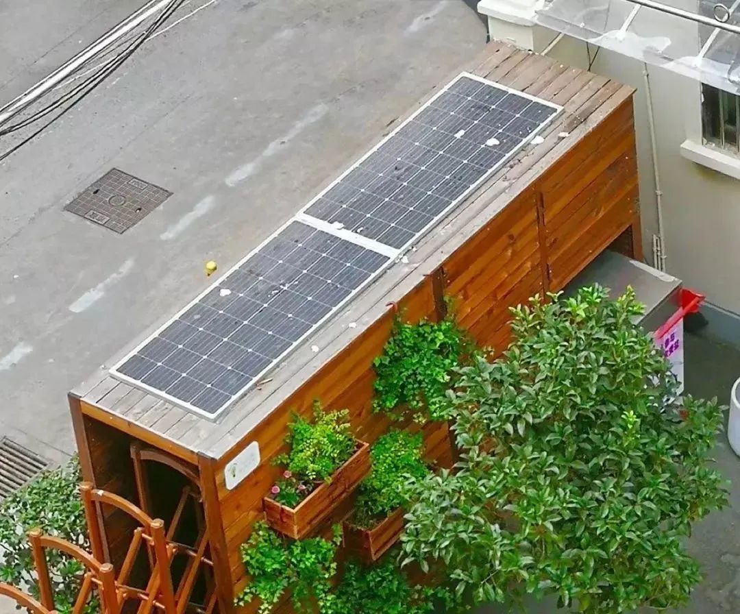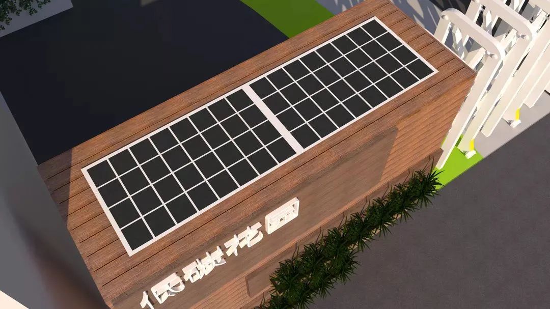 利用入口另外一侧的空间,放置大概2-3平米光伏板,产生电能供花园电动推拉门使用。