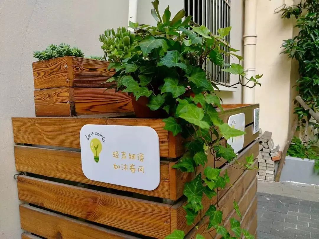 在前期调研的过程中发现,蒙西小区居民有浓厚的养花、种花的兴趣,因此街道将这个区域打造成一个居民植物的展示和分享的区域。一方面居民通过参与小区自治活动的形式,获得自治积分,居民可以使用积分来兑换花园绿植进行养护,另一方面成立花园志愿者团队,由小区居民自治管理。