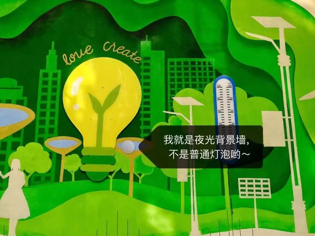 利用东墙较弱太阳辐射资源,设计了光伏板串连LED灯泡,白天收集太阳能、晚上发光。白天是一个景观,而晚上可以在墙面上形成一个标识导引。