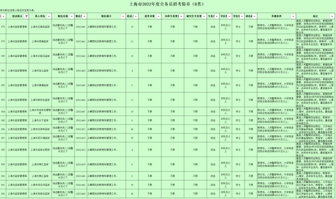 考生需于2022年2月21日至25日登录专题网站(www.shacs.gov.cn) 搜索“上海市监狱管理局”完成岗位报名。