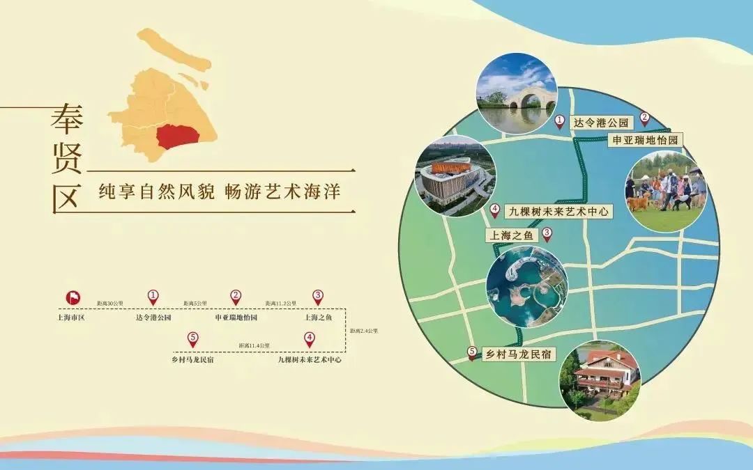 线路:达令港公园→申亚瑞地怡园→上海之鱼→九棵树未来艺术中心→乡村马龙民宿