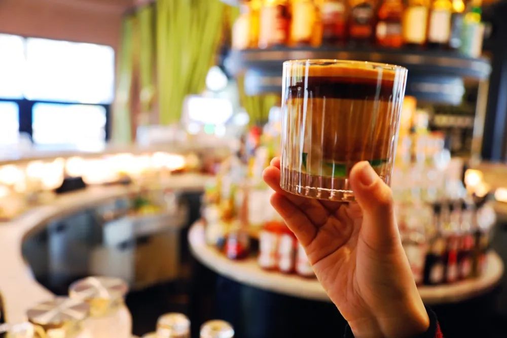 该店最具特色的是美酒加咖啡的特别调制,独家自酿的桂花酒配上用朗姆酒发酵过的哥伦比亚豆,再加上燕麦奶,调制成“微醺——桂花燕麦拿铁”。酒香豆香的完美融合带你进入双重微醺世界。