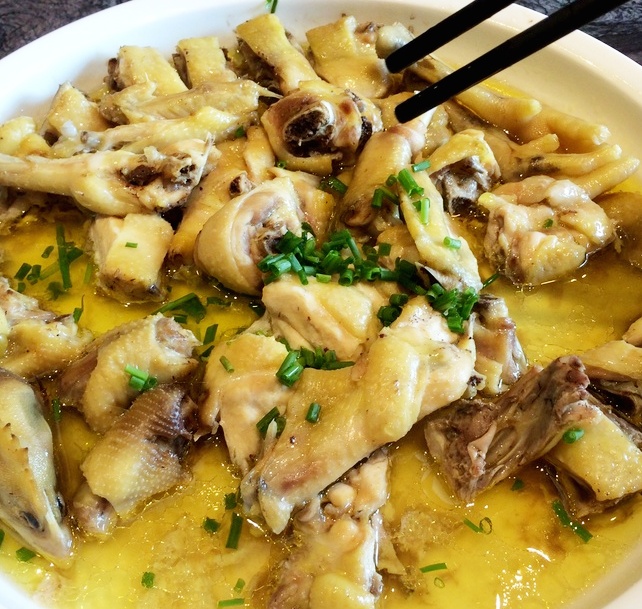 清蒸橘园鸡,是选取崇明橘园里散养的土鸡,切块后隔水蒸制,色泽金黄,卖相诱人。因为食材精到,即使不加任何多余的作料,味道已经十分鲜美。