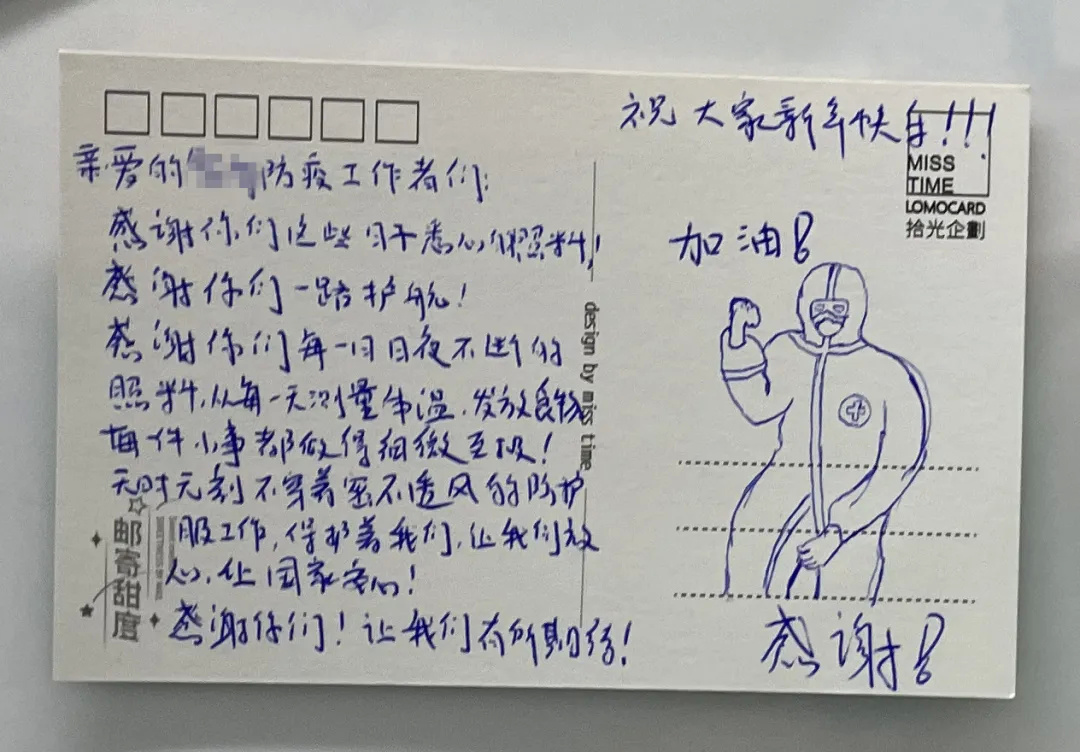 卡片里的感激之语,源于卡片之外的点滴关怀。因为有他们,让隔离人员们在无法团圆的日子里过上了一个“团圆年”。