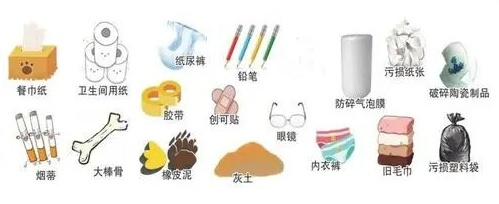 干垃圾:主要包括除上述几类垃圾之外的砖瓦陶瓷、渣土、卫生间废纸、纸巾等难以回收的废弃物,用适当的方法处理可有效减少对地下水、地表水、土壤及空气的污染。
