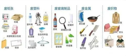 可回收物:主要包括废纸、塑料、玻璃、金属和纺织物五大类。废纸主要包括报纸、期刊、图书、各种包装纸、办公用纸、广告纸、纸盒等等。