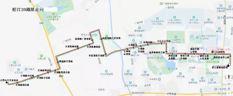 据悉,松江20路原走向为:自松江新城地铁站起经通跃路、新松江路、龙源路、文翔路、东胜港路、广富林路、鼎源路、文俊路、鼎盛路、文翔路至小昆山公交枢纽站。