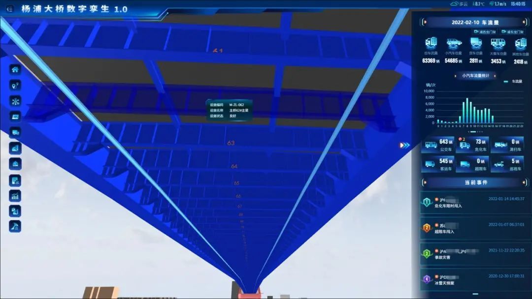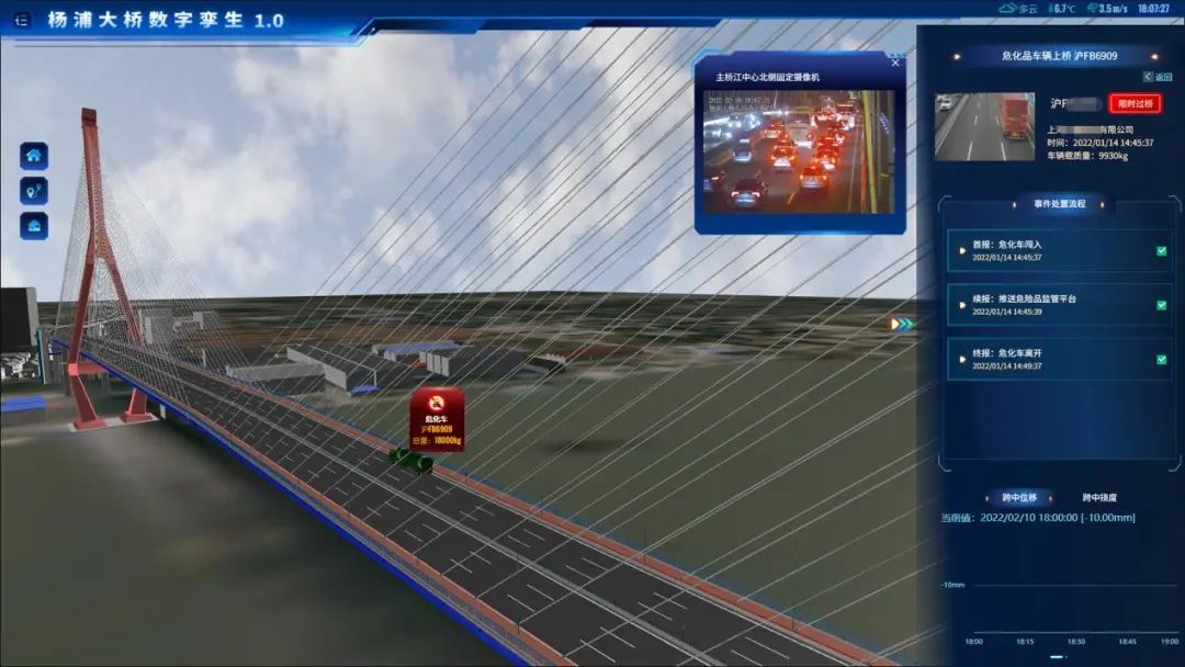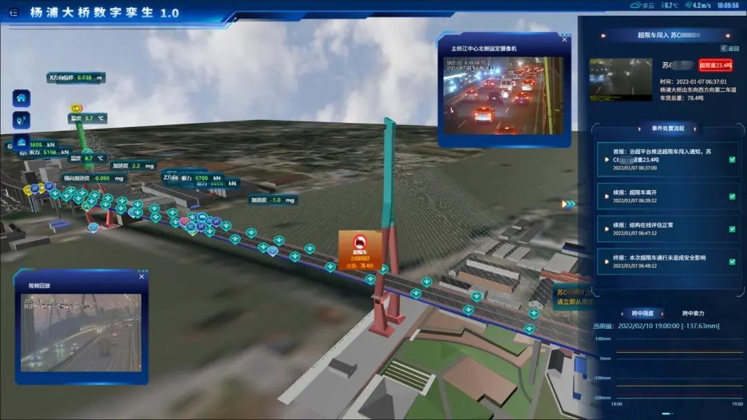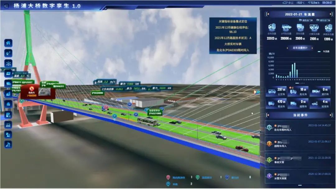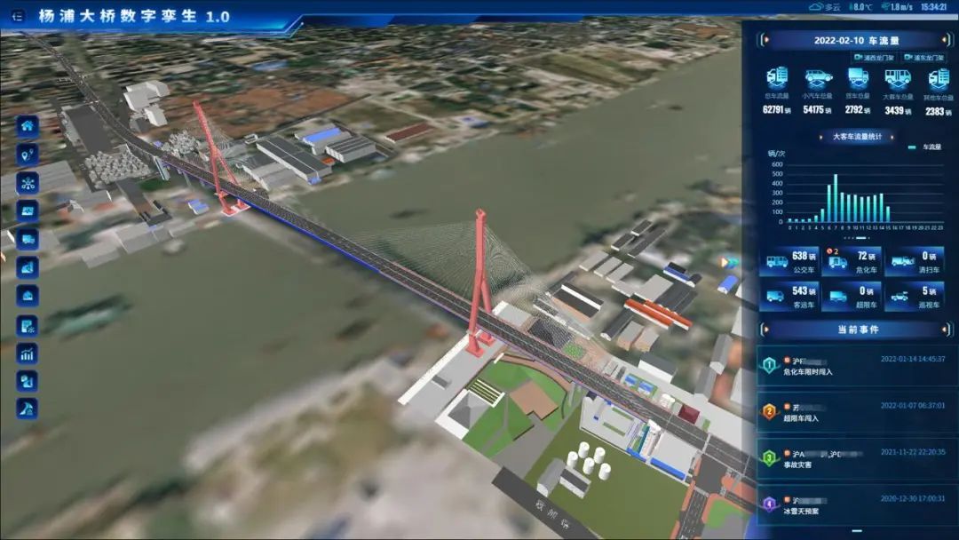 作为“云路中心”数字孪生示范项目,杨浦大桥先行先试,用数字孪生赋能智慧监管,提升道路运输治理现代化水平。