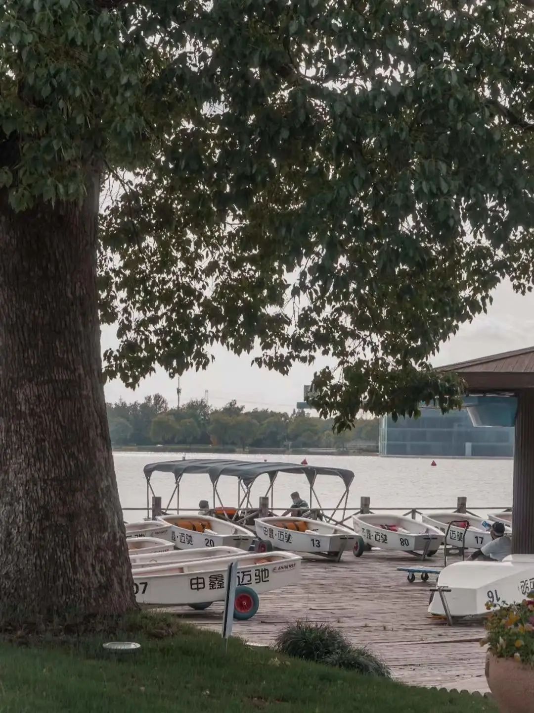 水像镜子一样倒映着蓝天绿树,偶尔几只小船画中游,还有漂亮的花花草草,可谓是野芳发而幽香,佳木秀而繁阴,真的要沉醉在这景色之中了。
