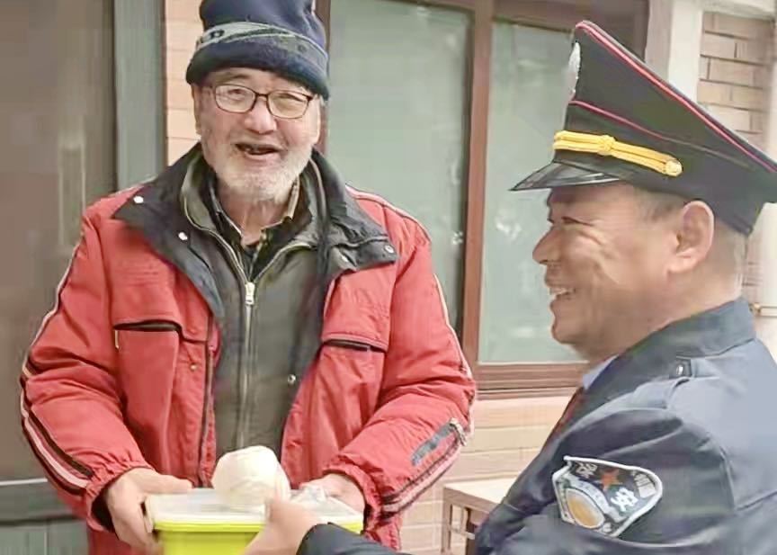 保安人员不仅送餐上门,平日里还会主动询问两名老人的身体状况、日常生活起居等,以便及时发现问题。空闲的时候,他们还会陪老人说说话,帮助老人排解孤单,这些场景自2020年至今从未中断。