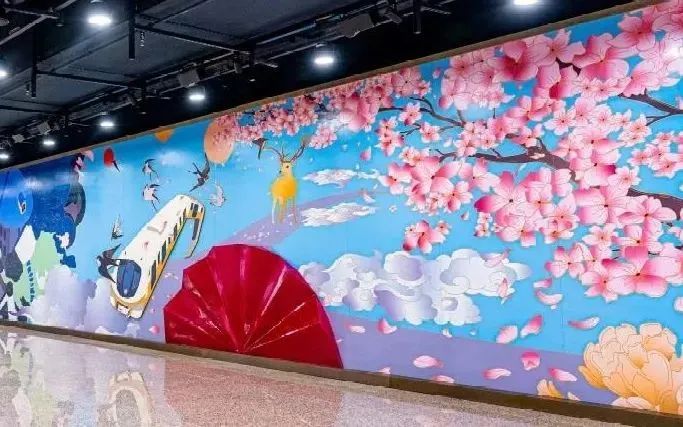 一幅超长的“春暖花开燕归来”壁画墙徐徐展开,妥妥的是开往春天的列车!眼看就到樱花季了,一起来打卡吧!