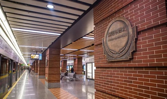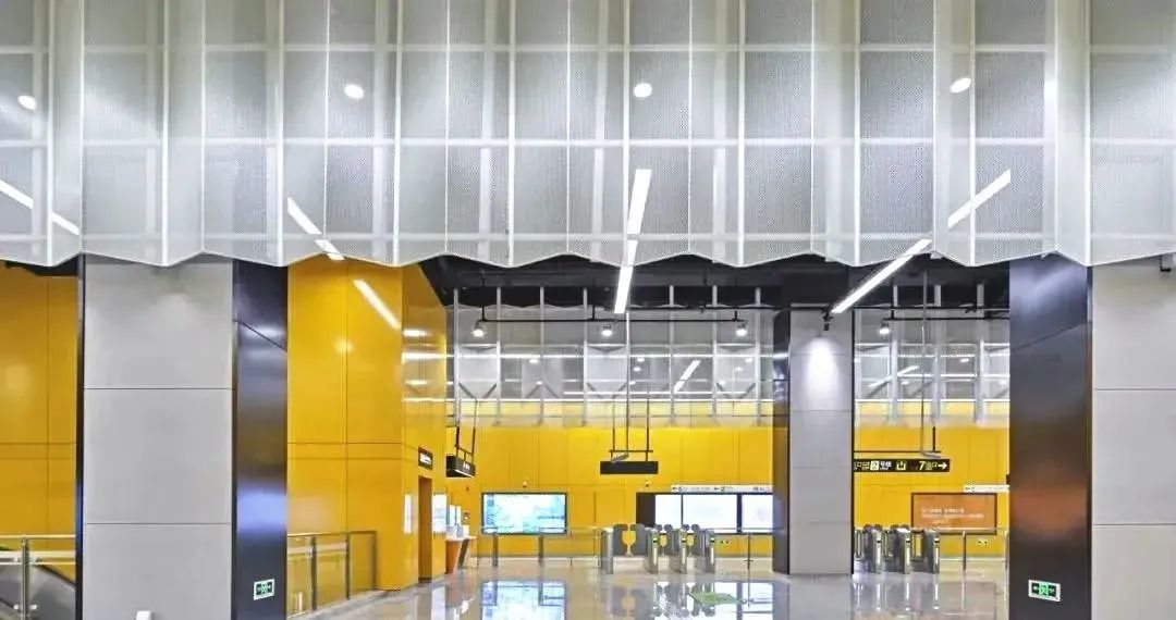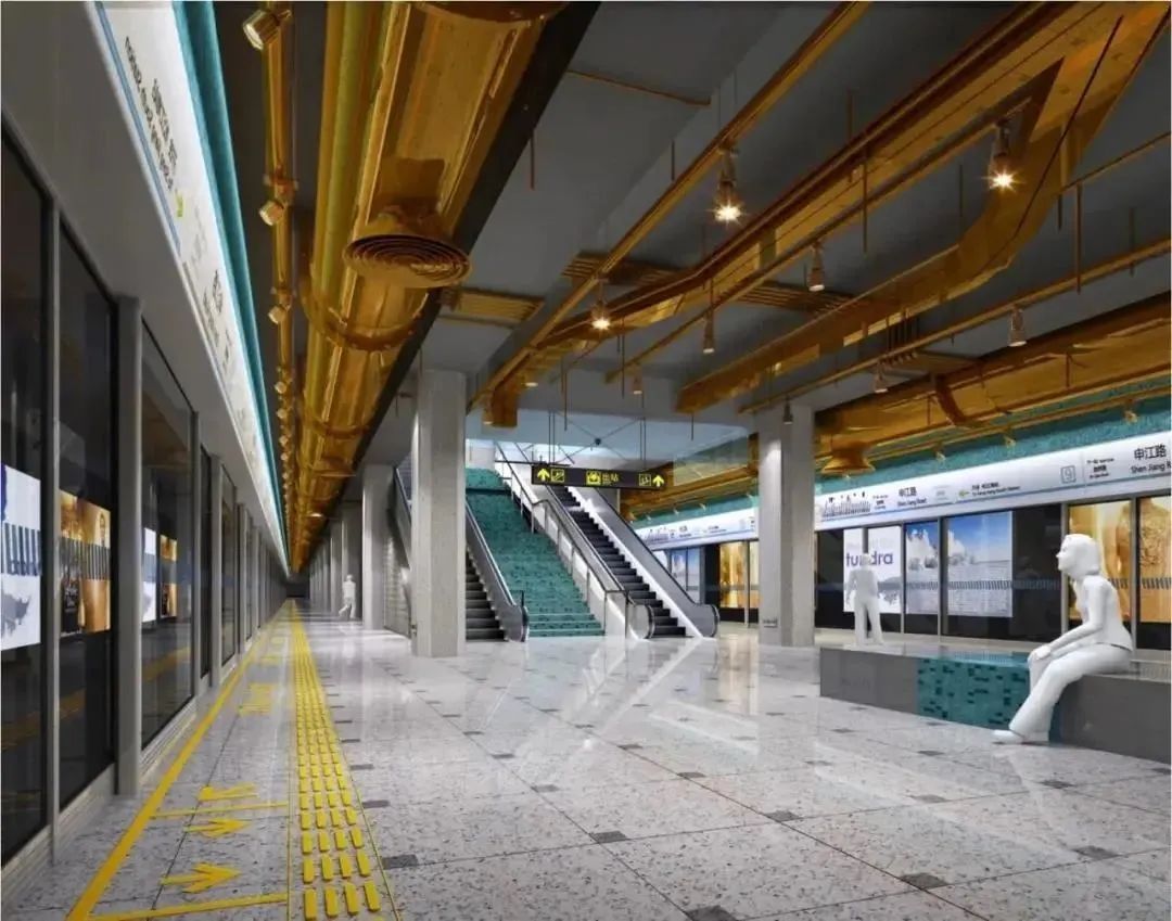 酷guy们必打卡9号线“工业风”马赛克装饰前卫又酷炫的金吉路站!这里还曾获得过“中国最美地铁站”功能类大奖。站内总层高6米多,顶部抛弃了以往的装饰,首次采用裸顶圆型风管。