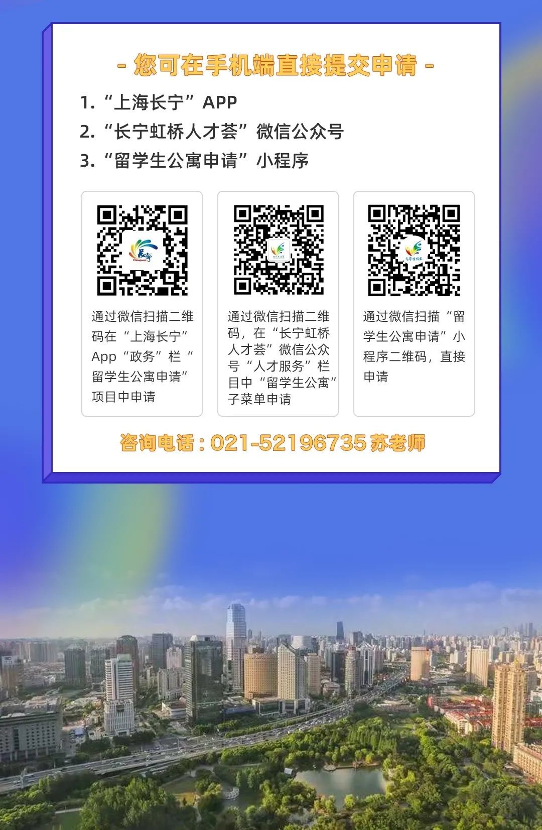 为深入贯彻中央和上海市人才工作会议精神,主动对接虹桥国际开放枢纽建设,着力打造“四力四城〞和“最虹桥”,今天(2月25日),长宁区发布了《留学人员回国(境)过渡期内租住人才公寓专项支持政策》,让学成归来的留学人才实现安居梦。