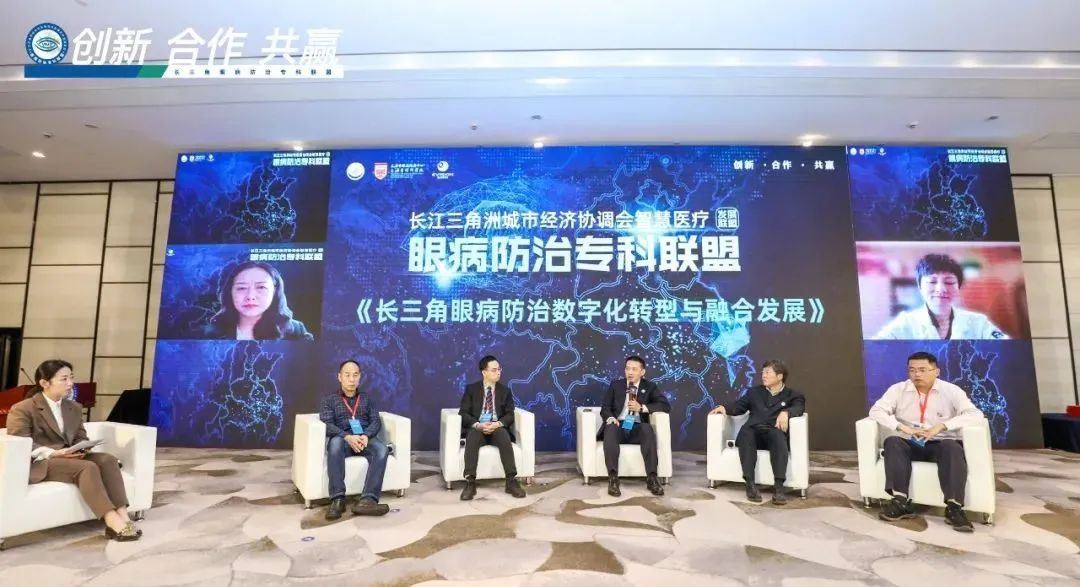 围绕“长三角眼病防治数字化转型与融合发展”这一主题,来自浙江、江苏、安徽、上海等地的眼科专家,以及复旦大学、华东政法大学、苏州大学的学者代表分别作了交流分享。国家卫健委卫生发展研究中心研究员游茂和复旦大学智慧城市研究中心教授凌鸿两位大咖还分别作了主旨演讲。