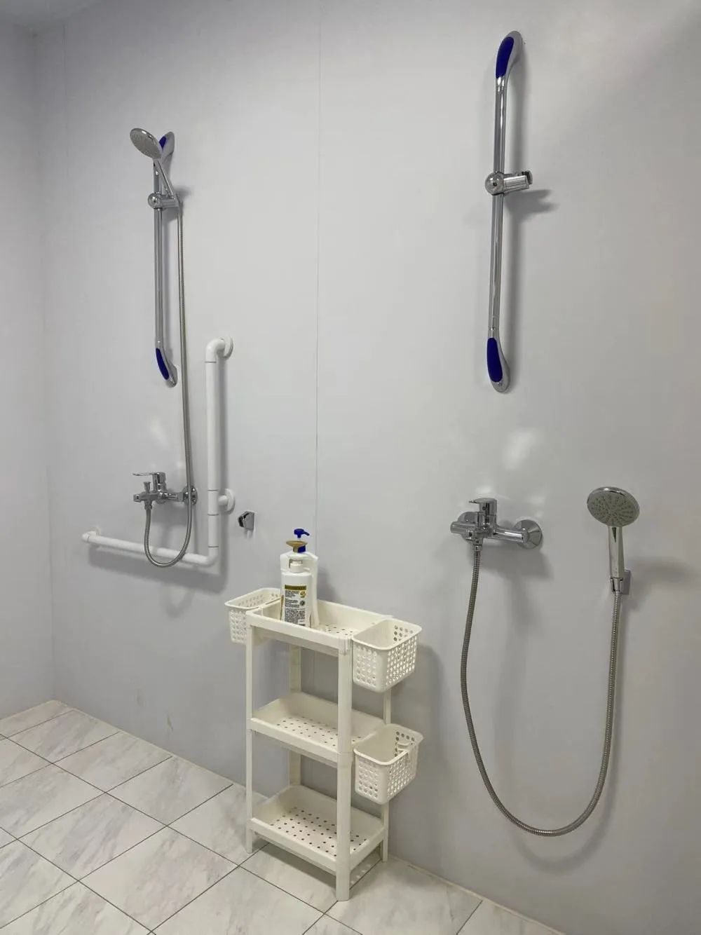 此外,在其他残奥运动员活动的区域,不少设施可以说是“量身定制”。比如专门辟出一个轮椅假肢维修站,以备不时之需;在运动员热身区,将脚蹬自行车换为手摇健身器;在运动员更衣室的淋浴间,新增一个花洒底座,让运动员触手可及。