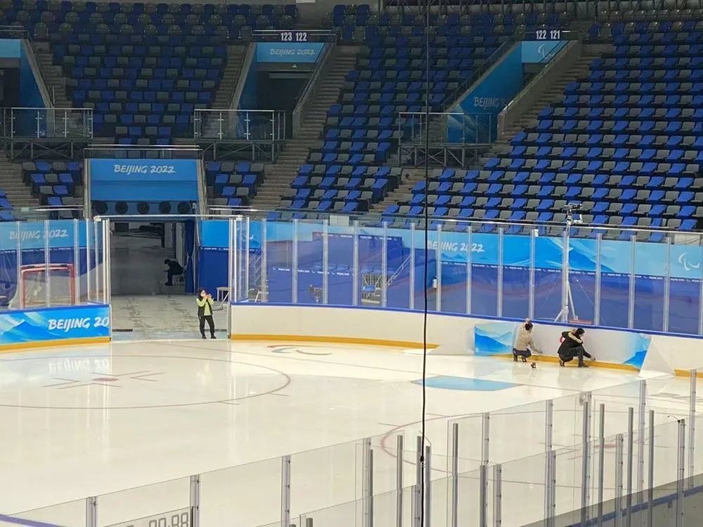 在媒体混采区,设立在媒体与采访对象之间的挡板由此前的1.2米降至0.6米;从运动员赛时更衣室到冰场的通道内,新铺设的仿冰板覆盖了此前的橡胶地板;在运动员席和运动员“受罚席”,席位的前板墙则更换为了透明板墙。
