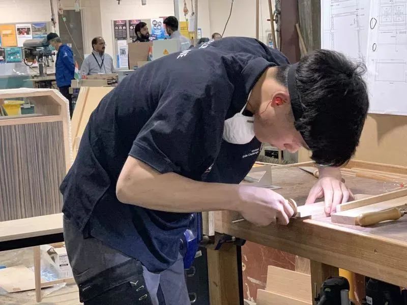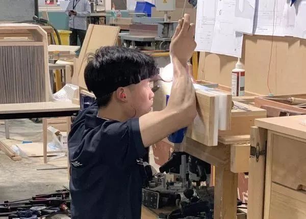 在2019年举办的第45届世界技能大赛上,有一名年仅20岁的中国选手,凭借自身过硬的专业技能,完成了难度系数极高的“双门单抽实木贴皮矮柜”,成功摘银,实现了中国家具制作项目上奖牌的零突破。