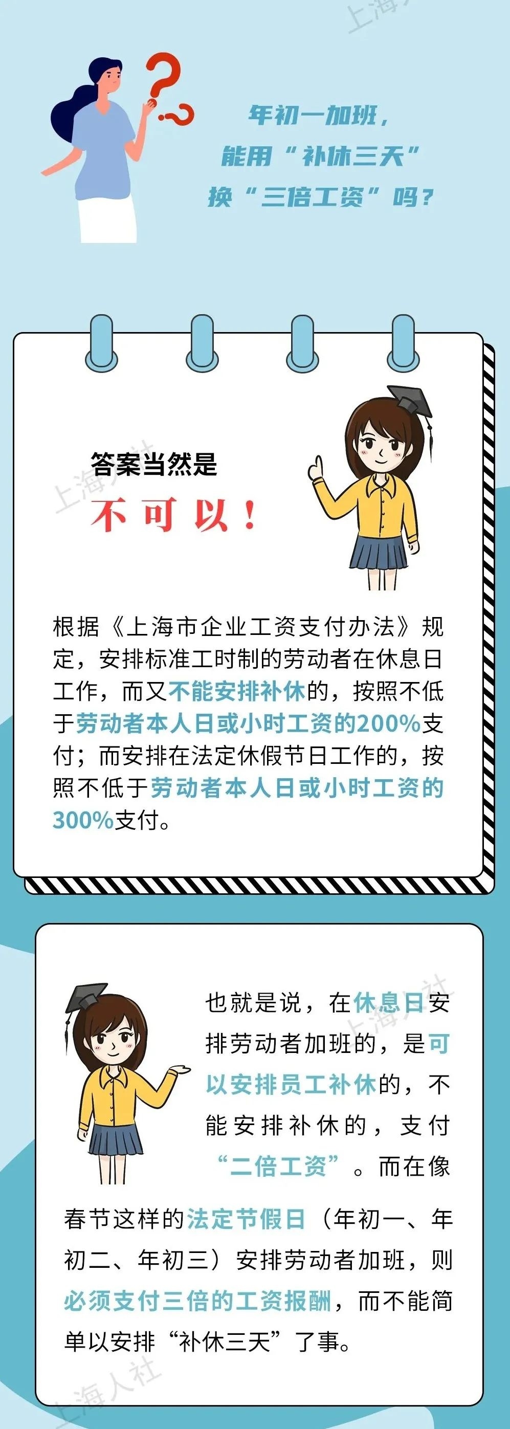 你知道加班和值班的区别吗?法定节假日期间只要去公司加班,就要支付加班费吗?加班日工资的计算公式是什么?市人社局介绍,如果七天长假上班,在法定节假日(年初一、年初二、年初三)必须另支付三倍日工资,其余四天实行标准工时制的企业可选择给予补休或另支付双倍日工资。安排在法定休假节日工作的,不能用“补休三天”换“三倍工资”。详见↓