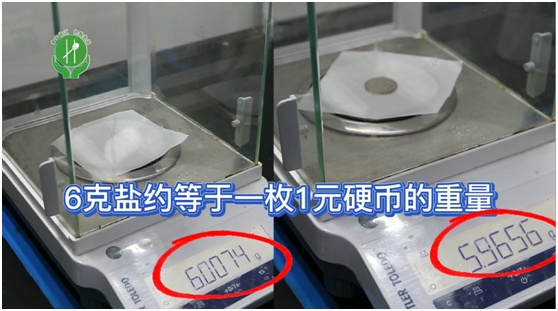 6克食盐约等于一枚1元硬币的重量。