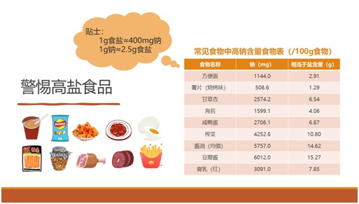 (小贴士:1g食盐≈400mg钠,1g钠≈2.5g食盐!)