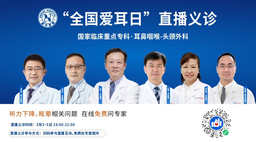 在这特殊时期,为继续普及听力健康知识,传播正确的预防和保健知识,进一步提高全民的爱耳护耳意识,早期发现、早期诊断与早期干预听力损失,最终达到人人享有健康听力、耳聪一生的目的,上海交通大学医学院附属新华医院将于3月3日-5日开展在线免费直播义诊活动,3月4日开展线下义诊。