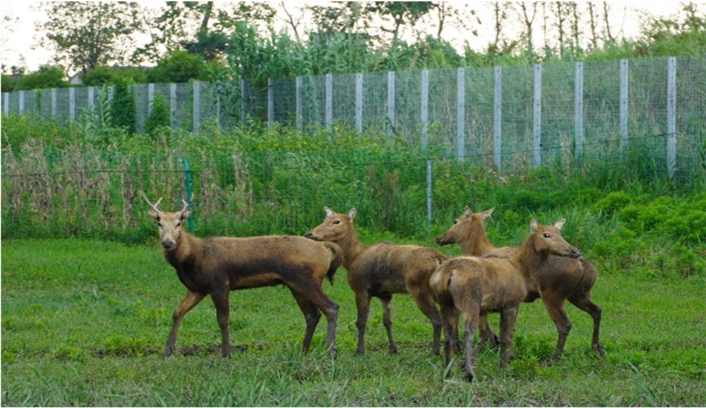 ●另一方面,麋鹿保护的最终目标是恢复长期自我维持的野生种群,重引入使麋鹿逐渐服习当地的自然生态环境,为成功放归大自然积累经验、创造条件。