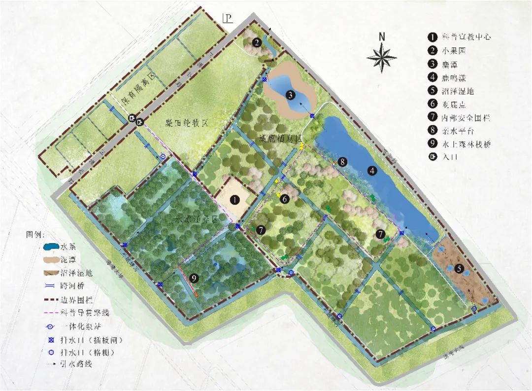 新建成的麋鹿野放栖息地基地位于崇明区新村乡,整个项目占地300多亩,被划分为麋鹿栖息区、麋田(轮牧)区、隔离区、水源涵养区和科普宣教区5大功能区。