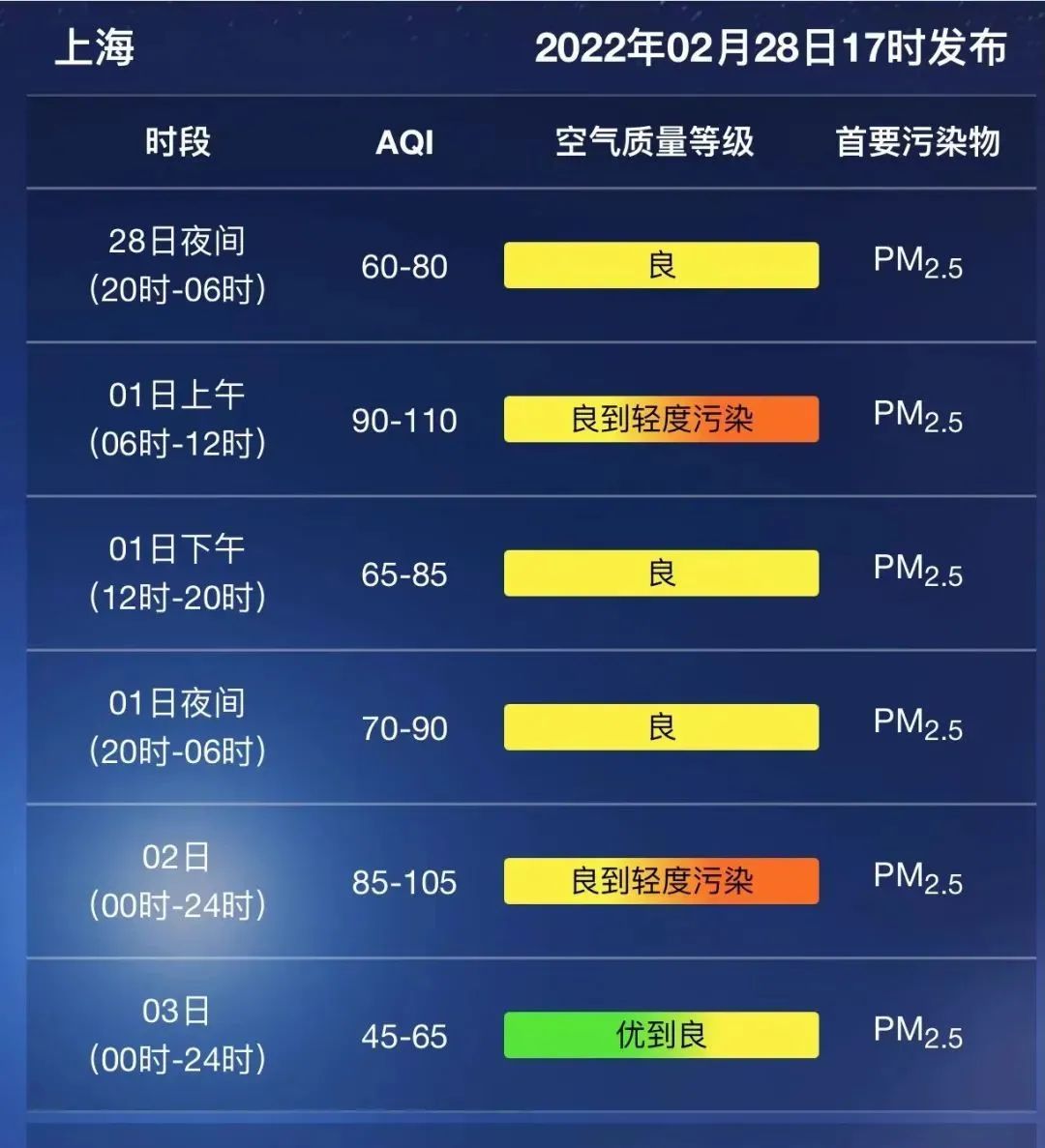 空气质量良到轻度污染