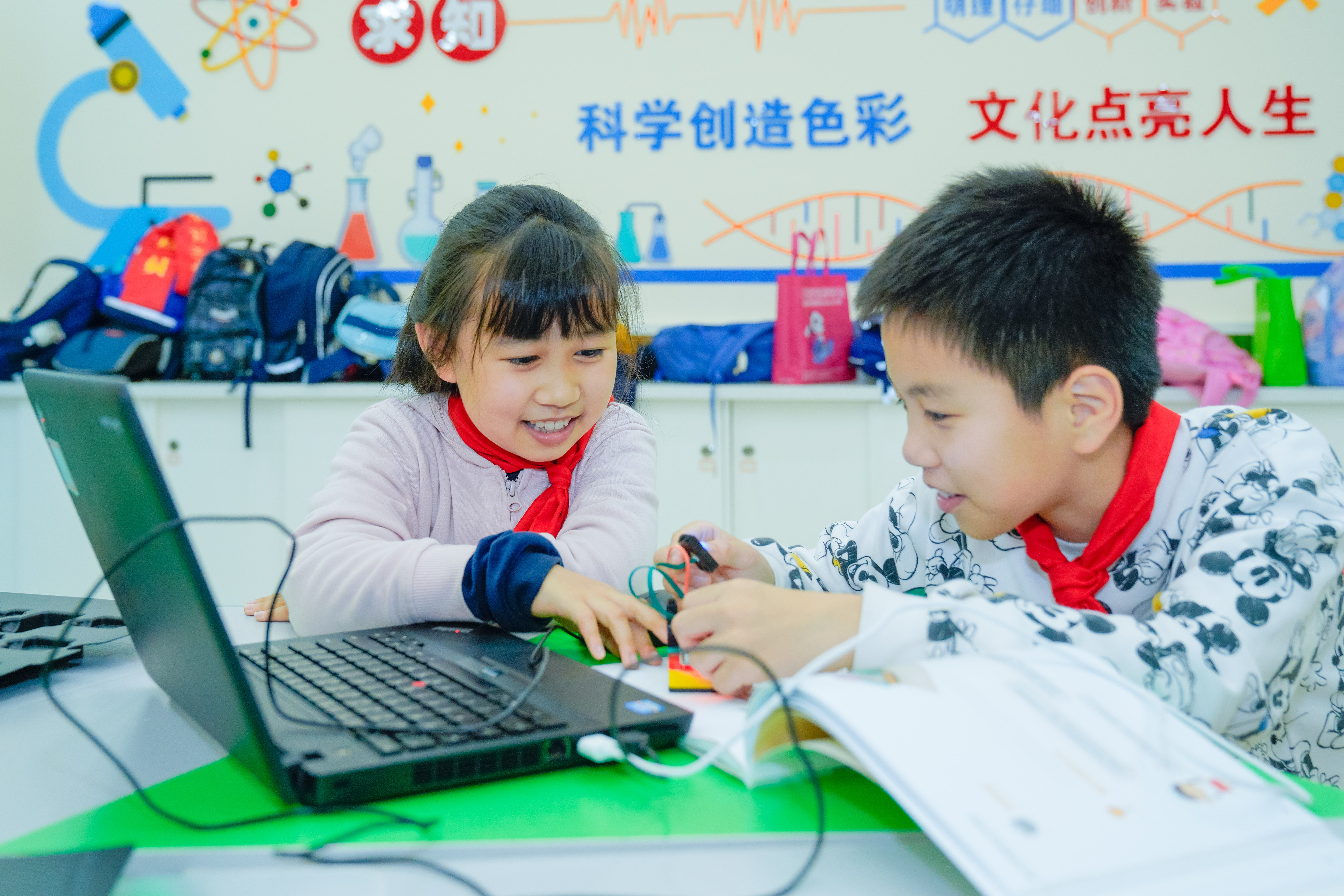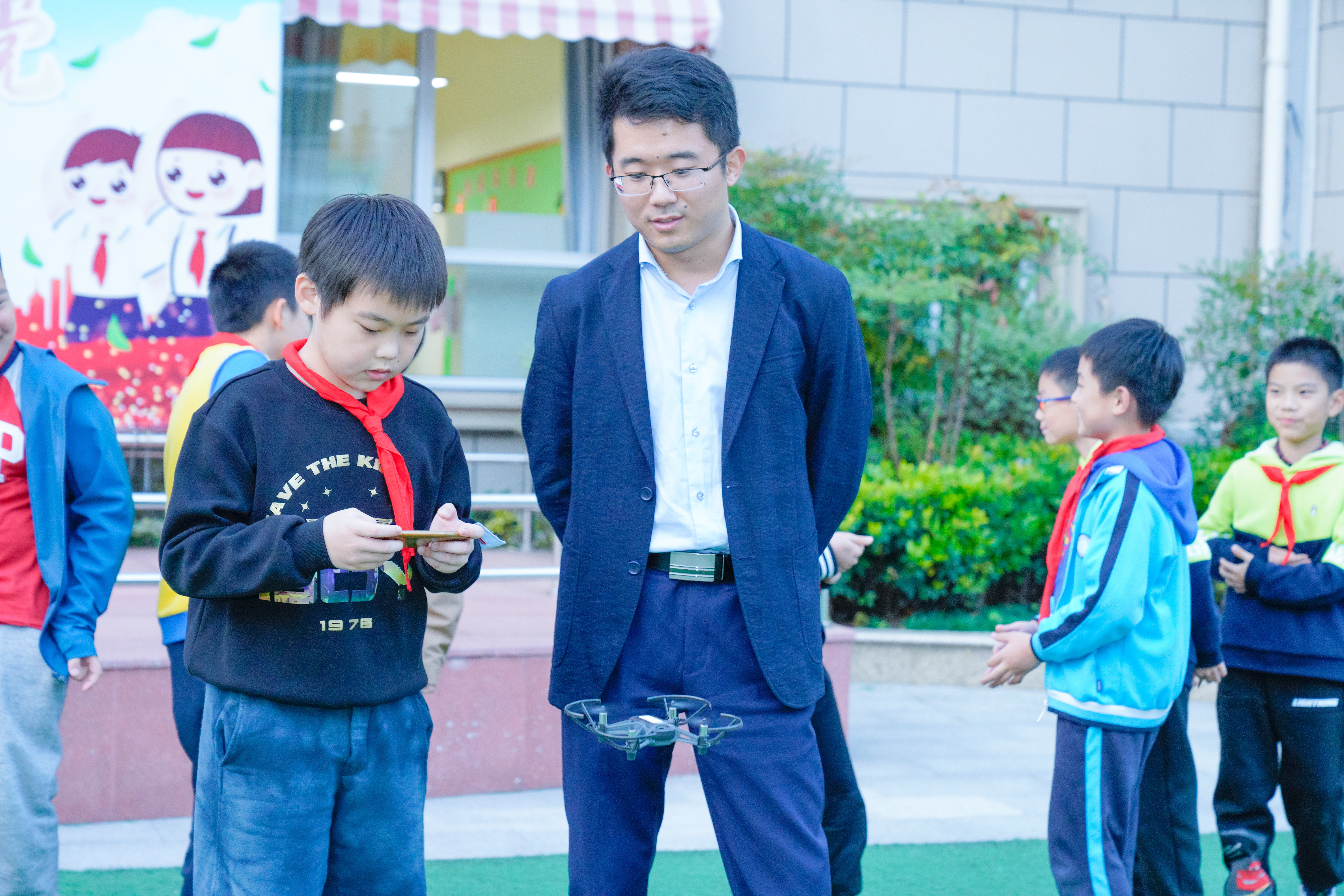 t在动手动脑的创新活动中,智能机器人运动、无人机飞行拍摄、电脑编程等项目,是最受孩子们喜欢的项目。在空旷开阔的操场上,操纵无人机在空中“任意”飞行,将城市美景摄入其中,是少儿们最惬意的时光。