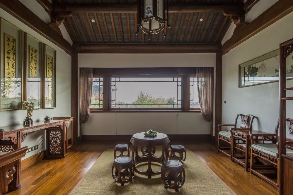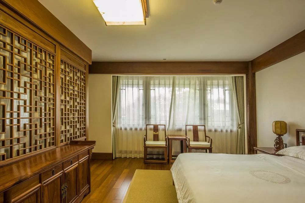 来到客房区,记者看到,这里的每栋楼都带有独立的庭院,分别以植物花卉为主题,并在房间内的字画、桌椅、灯饰、家具中显现。