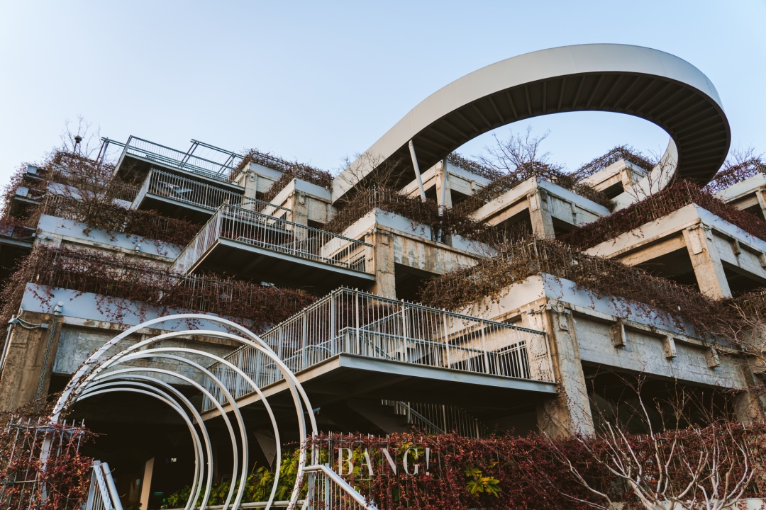 这里藏着一座造型独特的建筑,从外观看是工业风浓厚的钢铁森林,走进后会发现,层层叠叠的露台、螺旋上升的楼梯都被各种各样的绿植包裹着。