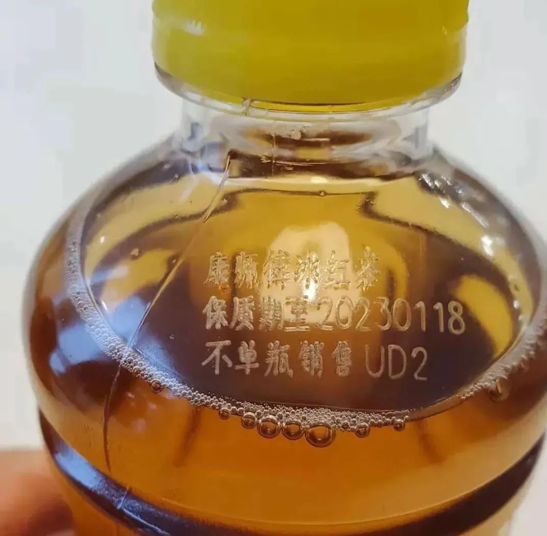 为了方便消费者整箱购买后单瓶饮用,无标签饮料瓶身上使用激光打印技术,标识了产品名称以及保质期等信息。据了解,打印信息所使用的激光打印技术具有更高的工艺水平,可以避免油墨打印污染的问题。