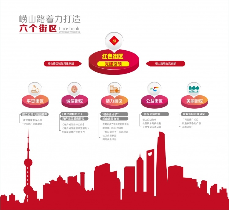 老盛兴门外,崂山路上人来人往、车水马龙,但一切依然井然有序,这得益于各个职能部门的支持。多个政府部门、单位参与共治联盟建设,并出人出力,例如综合执法队加派人手,规范共享单车停放;城运分中心接入道路公共视频点位,用智能化手段降低安全事故。尤其是针对崂山路沿线的学校,警方派人护校安园,交警部门则在早晚高峰加派人手疏导交通,营造了井然有序的“烟火气”。