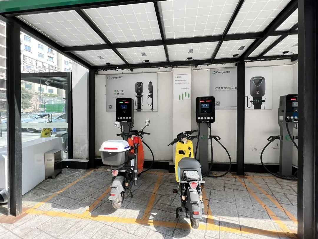 不仅如此,“快卜”还引入了全市首家集光储充检为一体的车充站。“快卜”新能源运营经理陶晓赟表示,光储充检一体站和其他传统站点的区别在于“储能柜”。储能柜上有光伏发电设备,会在阳光充足的时候“发电”,并储存到储能柜电池里面,用于后续的汽车充电。