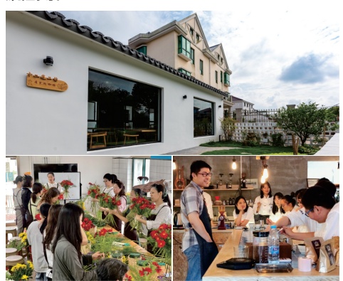 比如又见老八样饭馆、菜饭、黑鱼饭、阿婆点心坊、屋里厢咖啡、乡间酒坊等,一下子吊起游客吃吃喝喝的胃口。也有海沈记忆、花细草工坊、外来星工作室、小确幸画室、乡间花坊等可供深度体验的人文艺术。加上常青团队所做的公共空间,处处不乏拍照的景点,整个村子仿佛一座游购娱内容丰富的“大园区”。