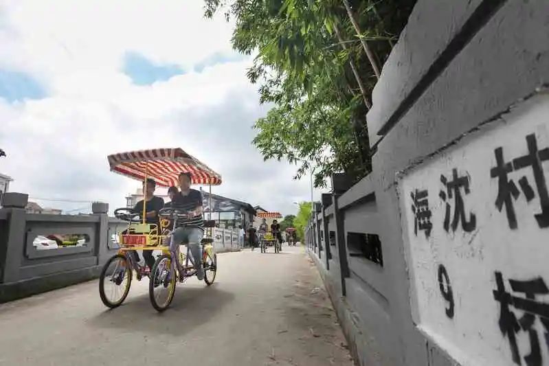 那么,如何把散落在村庄各处的“珍珠”串联起来呢?有关部门梳理了资源后,认为海沈村作为“冠军村”,推广骑行文化颇具优势,在村里设计了几条“骑行路线”,沿路有公共服务点提供统一的自行车租赁和路线导览。