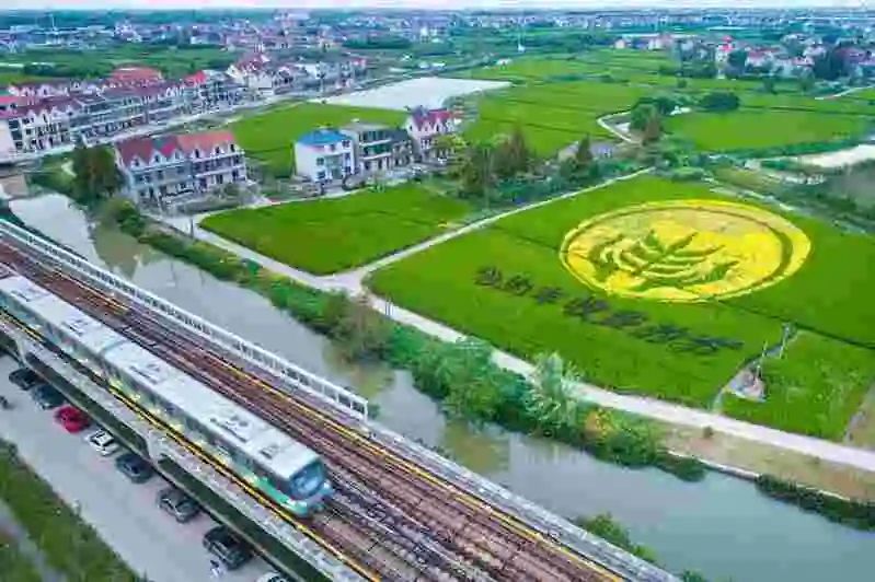 今天,乘坐地铁16号线,途经惠南东站,还未出站,乘客们就能看到巨大的七彩稻田画。它已经成为上海乡村的网红打卡点。
